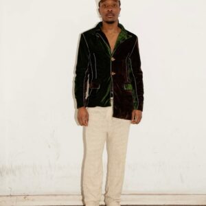 Notes: Knitted trousers with handcrafted coconut shell buttons, wooden buckles &cut-out on the waist